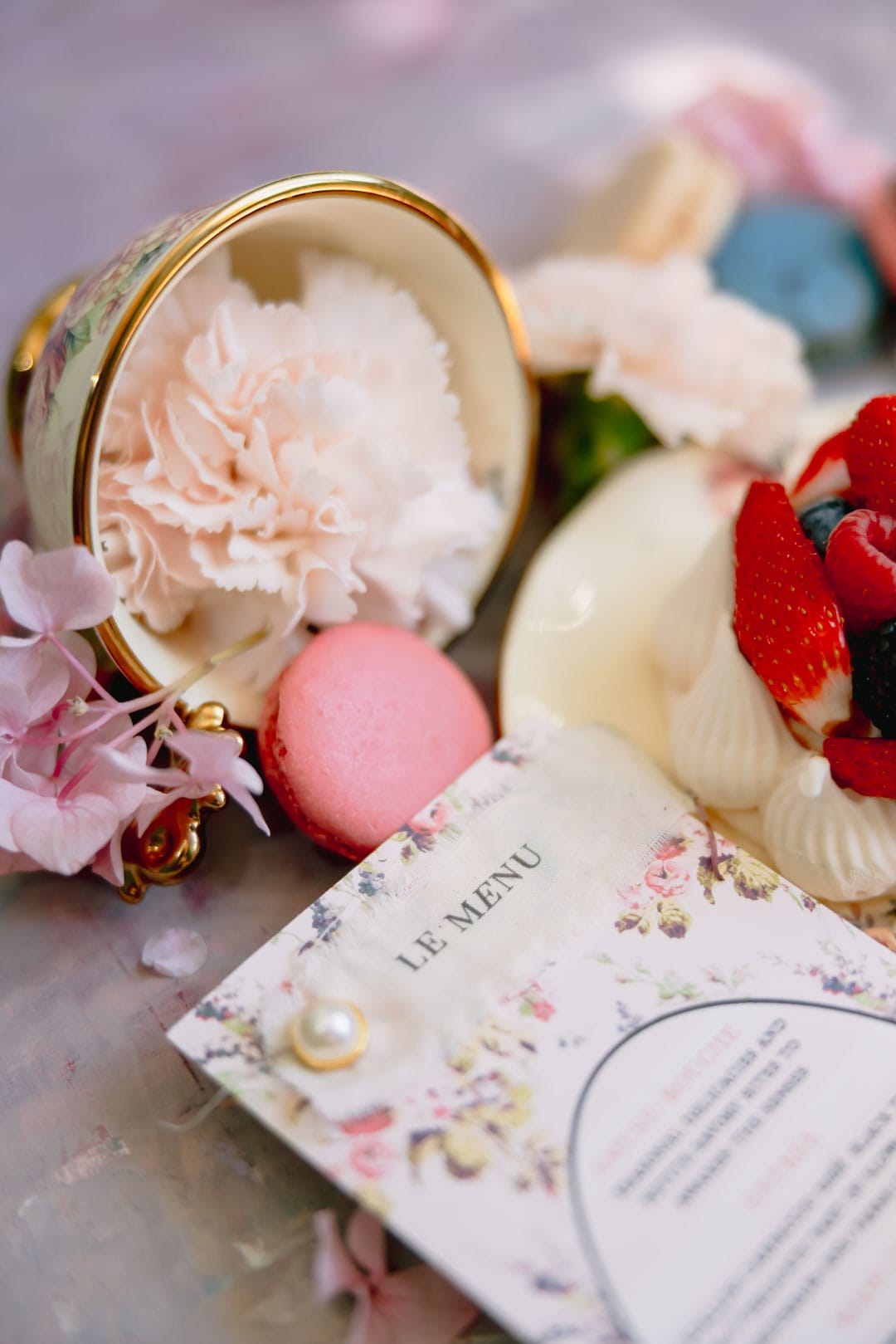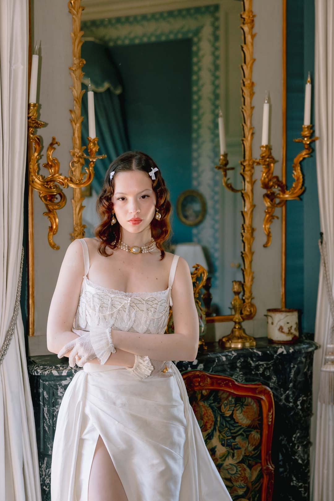 Per il nostro Editoriale a Chateau de Villette siamo partiti dai preparativi, curando acconciature e make-up per ricreare l’eleganza del XVIII secolo. Abbiamo realizzato dettagli di flatlay con grafiche antiche, macarons colorati, gioielli e lettere scritte a mano: un vero racconto per immagini, dove ogni elemento parlava di amore e raffinatezza.