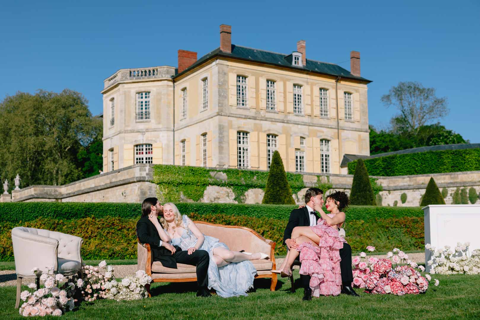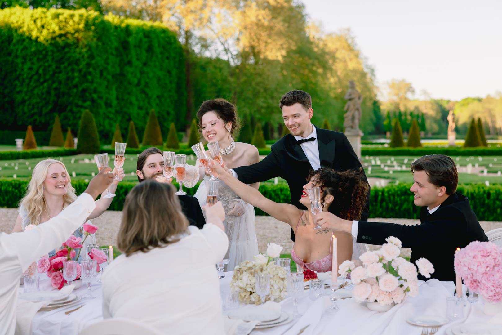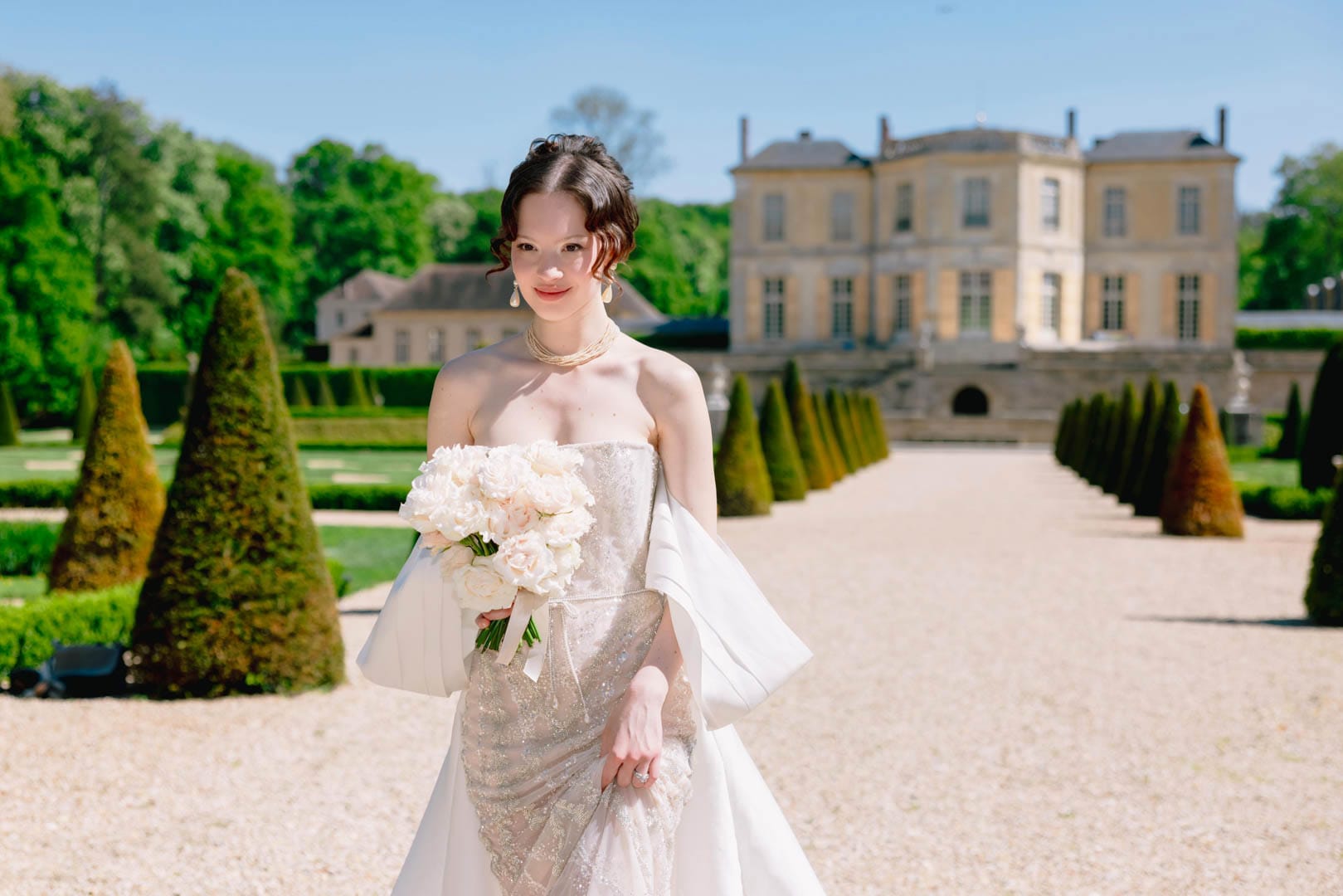 Situato a pochi chilometri da Parigi, lo Chateau de Villette è conosciuto come la “Piccola Versailles” e offre un’ambientazione lussuosa e indimenticabile per un matrimonio di destinazione. Con i suoi giardini all’italiana, le fontane e le sale decorate con stucchi e affreschi, è il luogo ideale per dare vita a una visione tanto romantica quanto scenografica. L’Editoriale a Chateau de Villette sfrutta ogni angolo di questa location esclusiva, dalla cerimonia nel parco alberato fino al banchetto illuminato davanti alla facciata del castello.