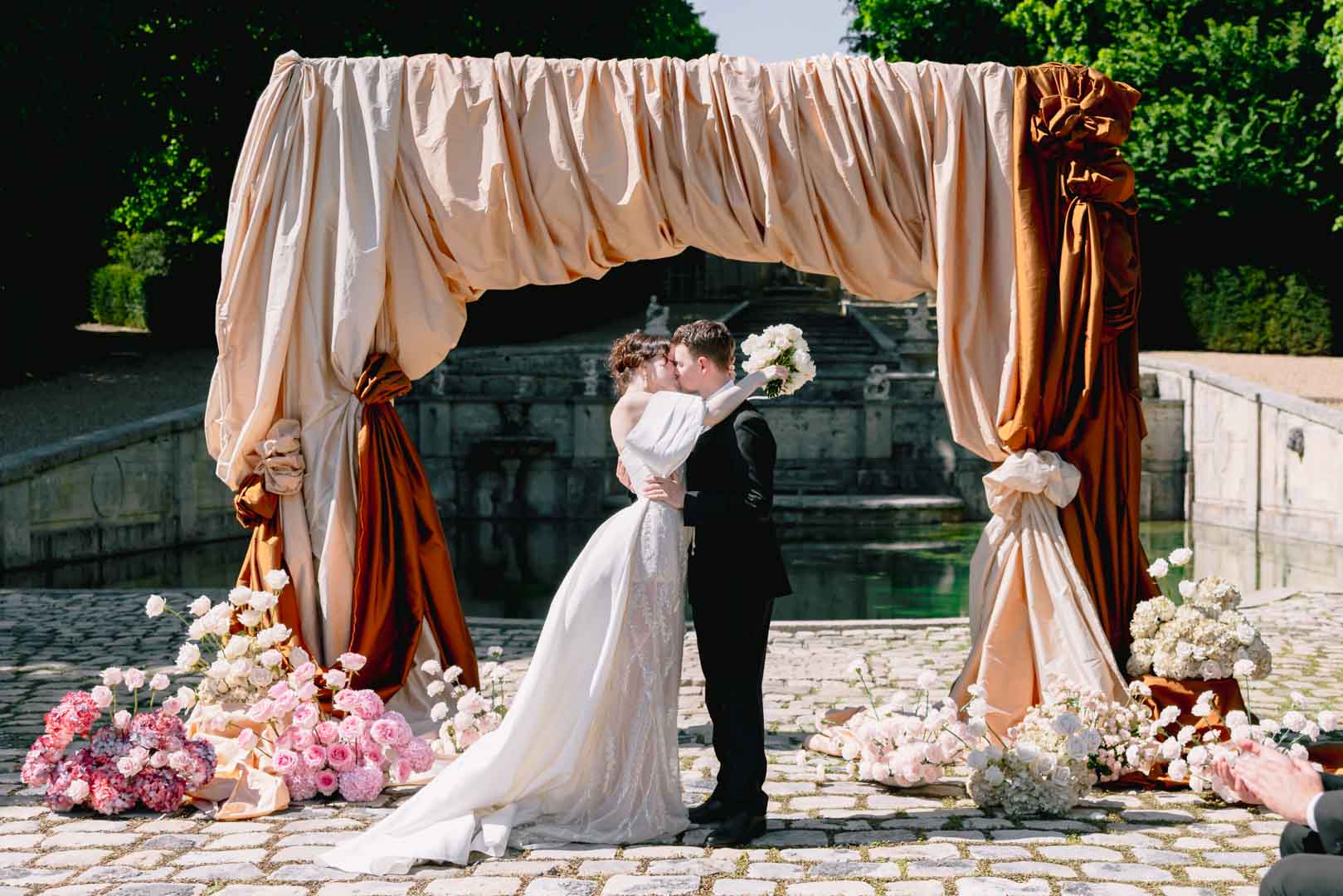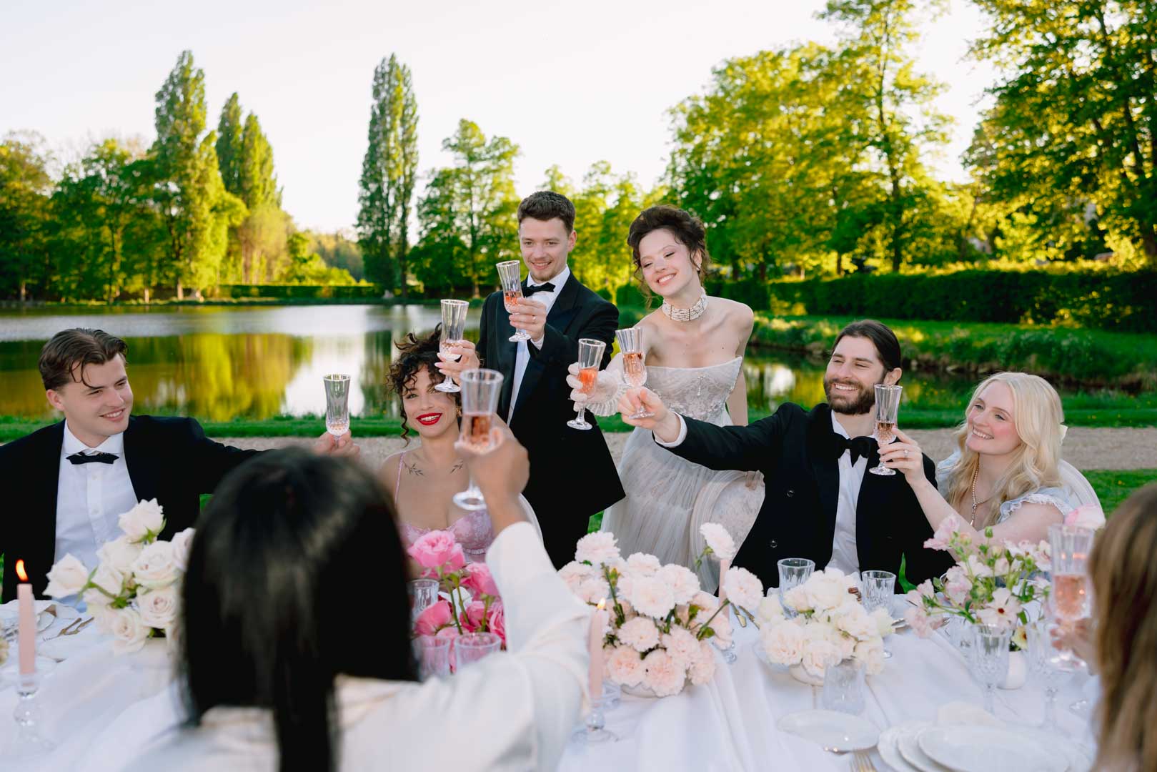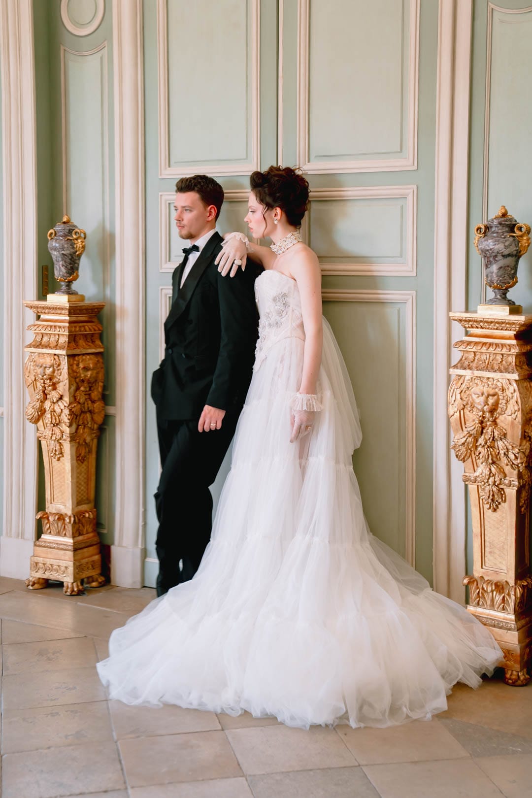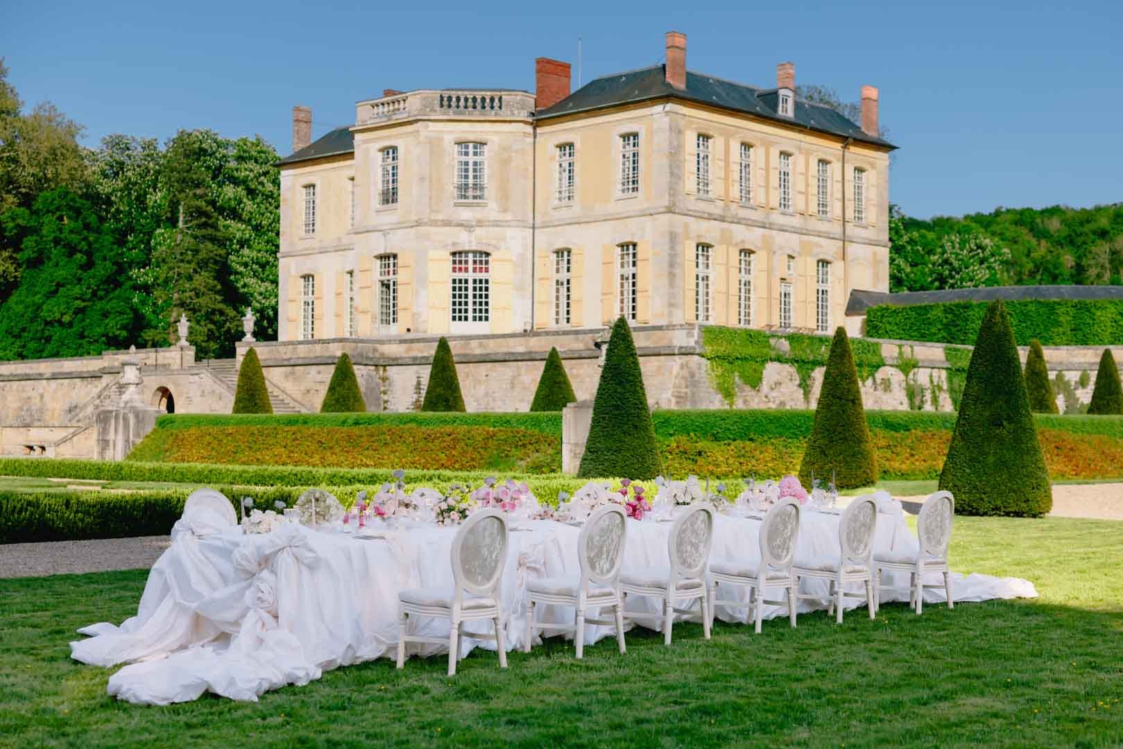 Situato a pochi chilometri da Parigi, lo Chateau de Villette è conosciuto come la “Piccola Versailles” e offre un’ambientazione lussuosa e indimenticabile per un matrimonio di destinazione. Con i suoi giardini all’italiana, le fontane e le sale decorate con stucchi e affreschi, è il luogo ideale per dare vita a una visione tanto romantica quanto scenografica. L’Editoriale a Chateau de Villette sfrutta ogni angolo di questa location esclusiva, dalla cerimonia nel parco alberato fino al banchetto illuminato davanti alla facciata del castello.